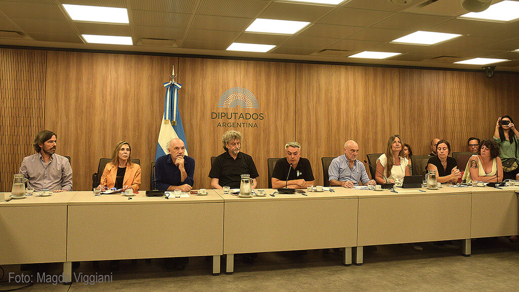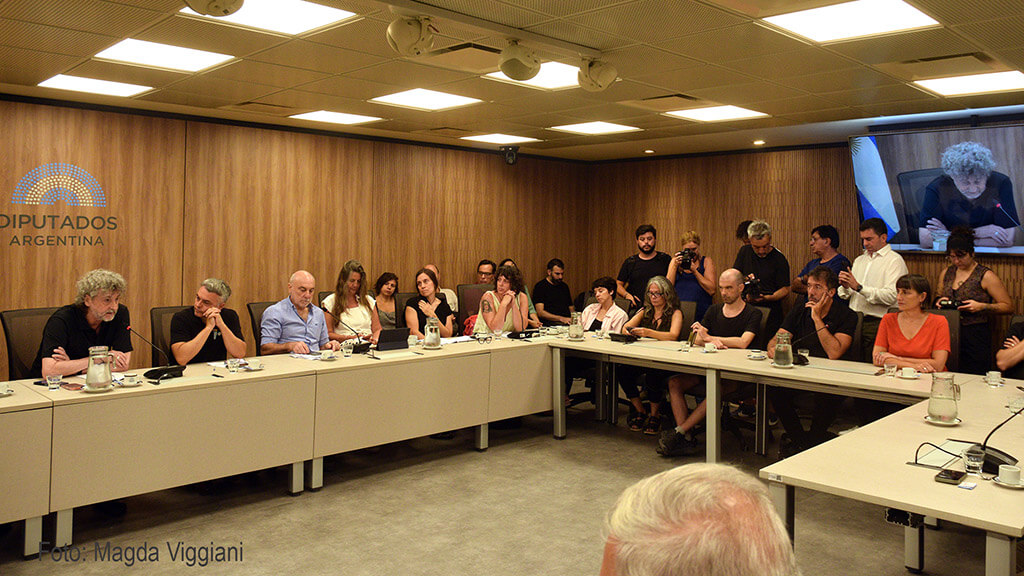 El presidente de Argentores, Miguel Ángel Diani expresó: “Argentores es una sociedad que representa a los guionistas y dramaturgos de nuestro país y a todos los guionistas del mundo a través de convenios internacionales. Por eso, de alguna manera, voy a hablar por todos ellos. Cuando uno ve una obra audiovisual en un cine, en la televisión o en una plataforma, está viendo el final de un trabajo que llevó muchos años de realización. Un trabajo que se inicia con una idea, que se transforma en un guion, y que luego entra en la etapa de realización y posteriormente de comunicación pública. Este recorrido no es lineal. Un guion pasa por muchas versiones, por muchas reescrituras, hasta convertirse en esa herramienta creativa que posibilitará, entre otras cosas, la gestión de recursos. La mayoría de los países con industrias audiovisuales desarrolladas, como Francia, Alemania, España, Italia, Dinamarca, Suecia, Polonia, Croacia, Inglaterra, Chile, Uruguay, Brasil, Colombia, México; los estados de EE. UU. (como Georgia, California, Nueva York, Luisiana, Illinois y Nuevo México), India, Japón y Corea del Sur, subsidian el sector mediante fondos públicos, incentivos fiscales y cash rebates, porque para incentivar la inversión privada en esta industria de riesgo, como es la cinematográfica, se necesita ese primer impulso del estado. Sin guion no hay proyecto, sin apoyo estatal, sin apoyo al desarrollo de un proyecto, la contratación a los guionistas se ve afectada de tal forma que los obliga a convertirse involuntariamente en los primeros inversores, ya que las contrataciones son a muy bajo valor o directamente no existen. Con los concursos no alcanza. Una película genera la creación de otra. Sin continuidad no hay futuro. Insistimos una vez más en nuestro reclamo: senadores y senadoras, no contribuyan a la muerte del cine y el audiovisual argentino”.