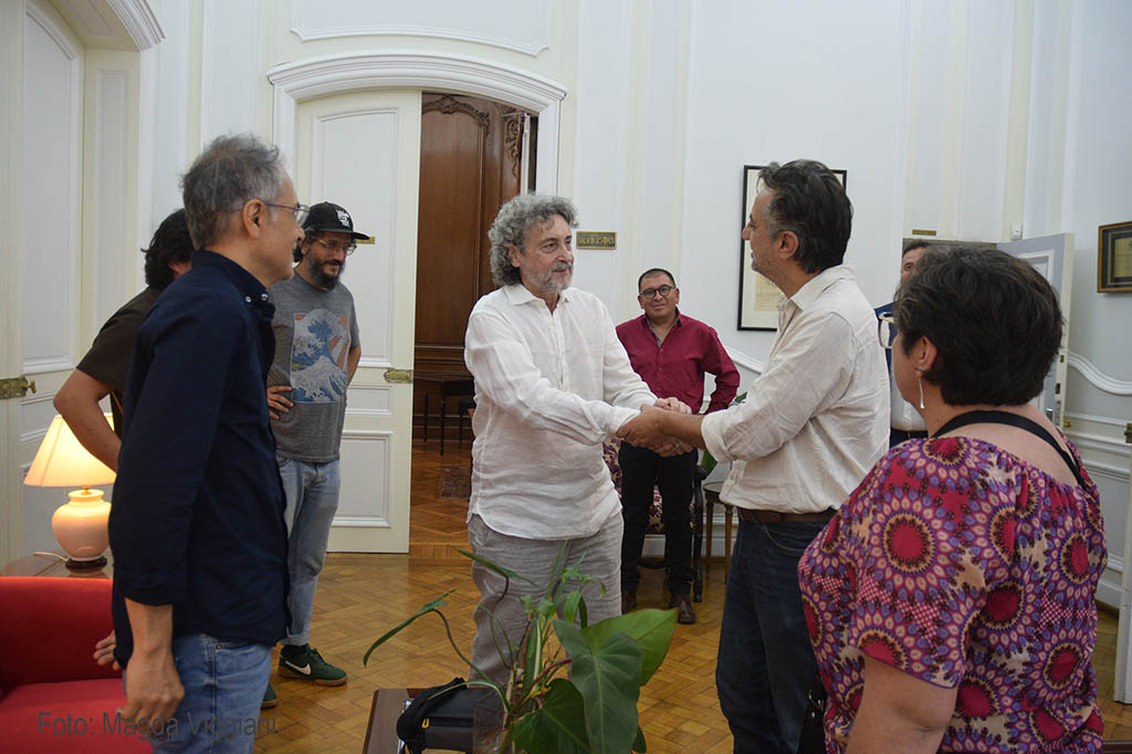 Los recibieron en Argentores Miguel Ángel Diani, Presidente; Sergio Vainman, Vicepresidente 1° y Guillermo Hardwick, Secretario, quienes mantuvieron también un cordial encuentro con los invitados, quienes se mostraron complacidos por visitar nuestra entidad y recibir de primera mano conocimientos prácticos del funcionamiento de nuestra entidad como sociedad de gestión colectiva de derecho de autor.